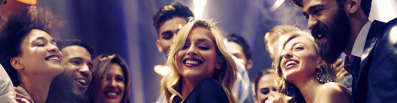 Menschen mit Spaß beim Tanzen, Feiern und Arbeiten