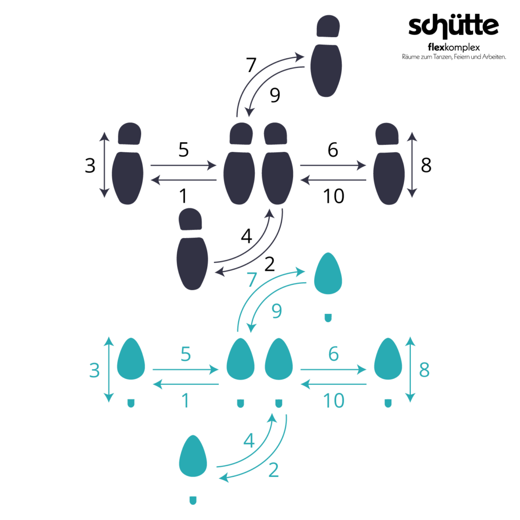 Der Basisschritt des Paartanzes ist eine Kombination aus Wiegeschritten und Wechselschritten. Anspruchsvoller werden zusätzliche Figuren und Drehungen, welche Du mit Genauigkeit tanzen musst.